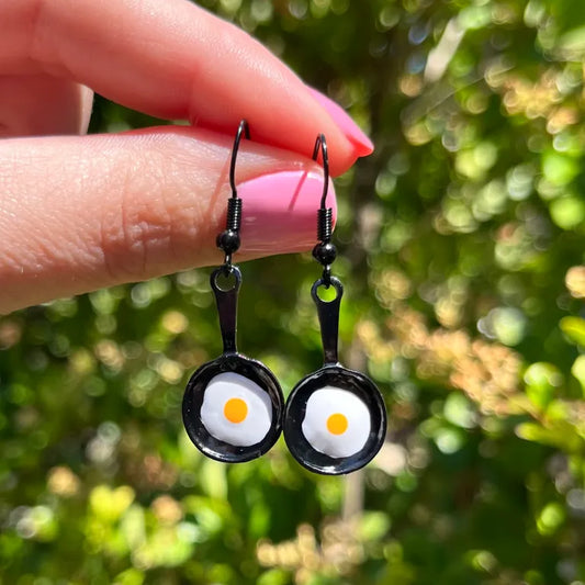 Frying Pan Egg Charm Earrings