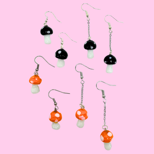 All handmade Halloween earrings have surgical steel fish hook hardware! We also offer additional upgrades like clip ons for non-pierced ears, leverbacks for stretched ears, and 925 sterling silver fish hooks for ultra sensitive ears. Shop all of our unique handmade silver Halloween earrings right here!