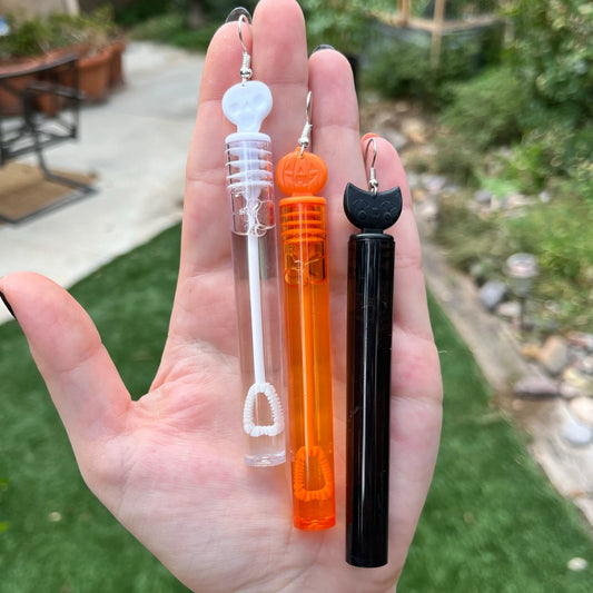 All handmade Halloween earrings have surgical steel fish hook hardware! We also offer additional upgrades like clip ons for non-pierced ears, leverbacks for stretched ears, and 925 sterling silver fish hooks for ultra sensitive ears. Shop all of our unique handmade silver Halloween earrings right here!