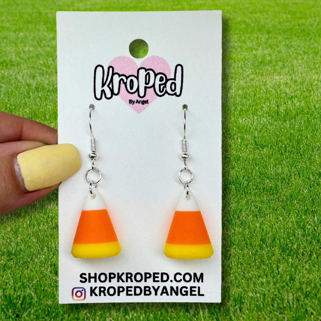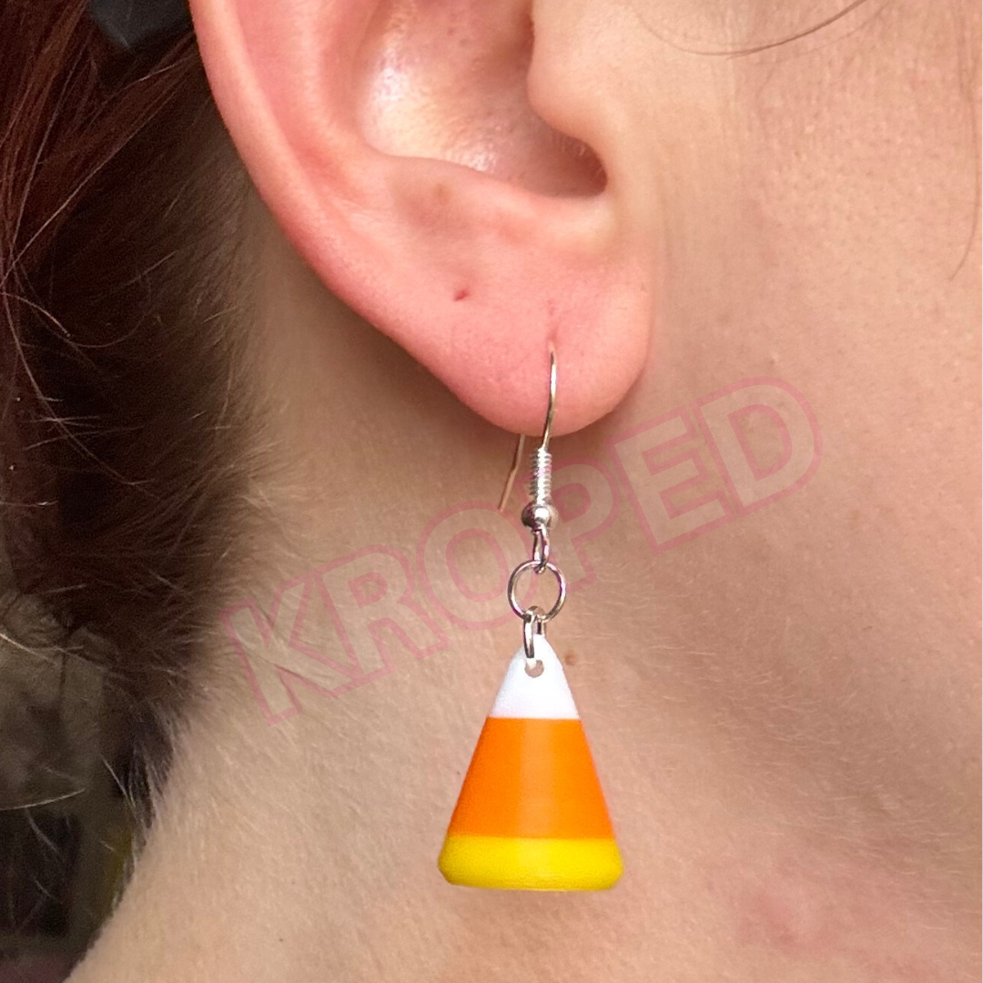 Bring a little sweetness to your spooky season with these handmade 3D printed candy corn earrings! Designed to look just like the classic Halloween treat, these lightweight earrings feature the iconic yellow, orange, and white layers that make candy corn so nostalgic. Perfect for Halloween parties, fall outfits, or adding a playful touch to your everyday look, these earrings are a festive accessory that’s equal parts cute and quirky.