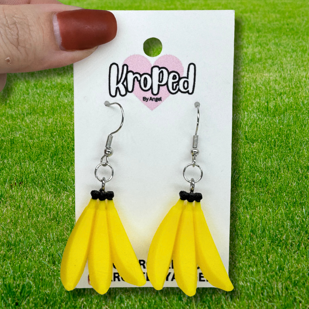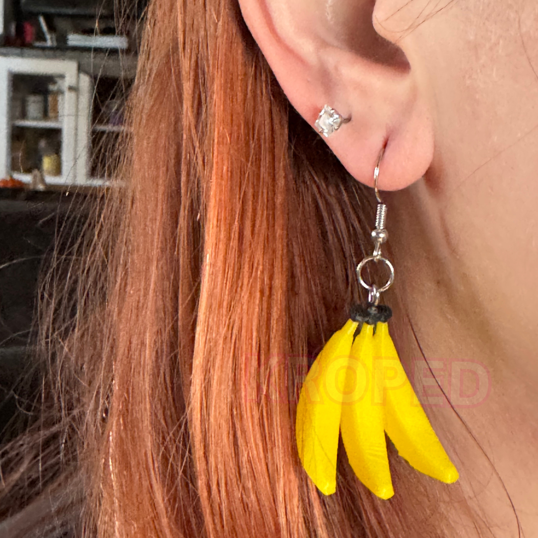 Go bananas for these playful 3D printed banana earrings! Each earring features a tiny bunch of bright yellow bananas, complete with a black stem for extra detail. Lightweight and bold, they swing with every step, making them the perfect quirky accessory for fruit lovers, tropical vibes, or anyone who loves to make a statement with their style. Handmade and totally unique, these earrings are a-peel-ing in every way!