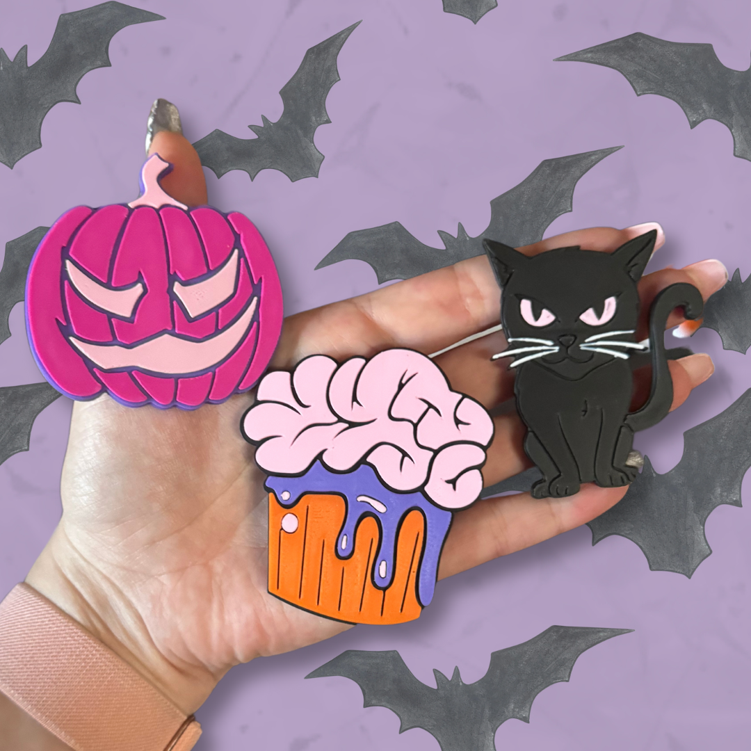 Add a touch of whimsy to your Halloween decor with our enchanting 3D printed black cat magnet! Standing at 2.5 inches tall, this adorable feline features striking pink eyes that pop against its sleek black design, making it a perfect accent for any space. Don't miss out on this charming addition to your collection!