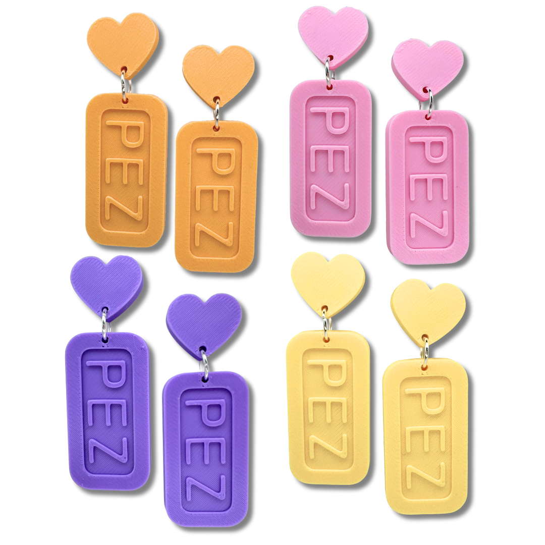 Sweeten up your look with these candy-inspired earrings! These playful dangles are 3D printed in vibrant, pastel colors and finished with a heart-shaped topper. Lightweight and fun to wear, each pair is secured with hypoallergenic surgical steel posts, making them perfect for sensitive ears. Whether you’re channeling Y2K vibes or just want a pop of sugar-coated cuteness, these earrings are a total treat.