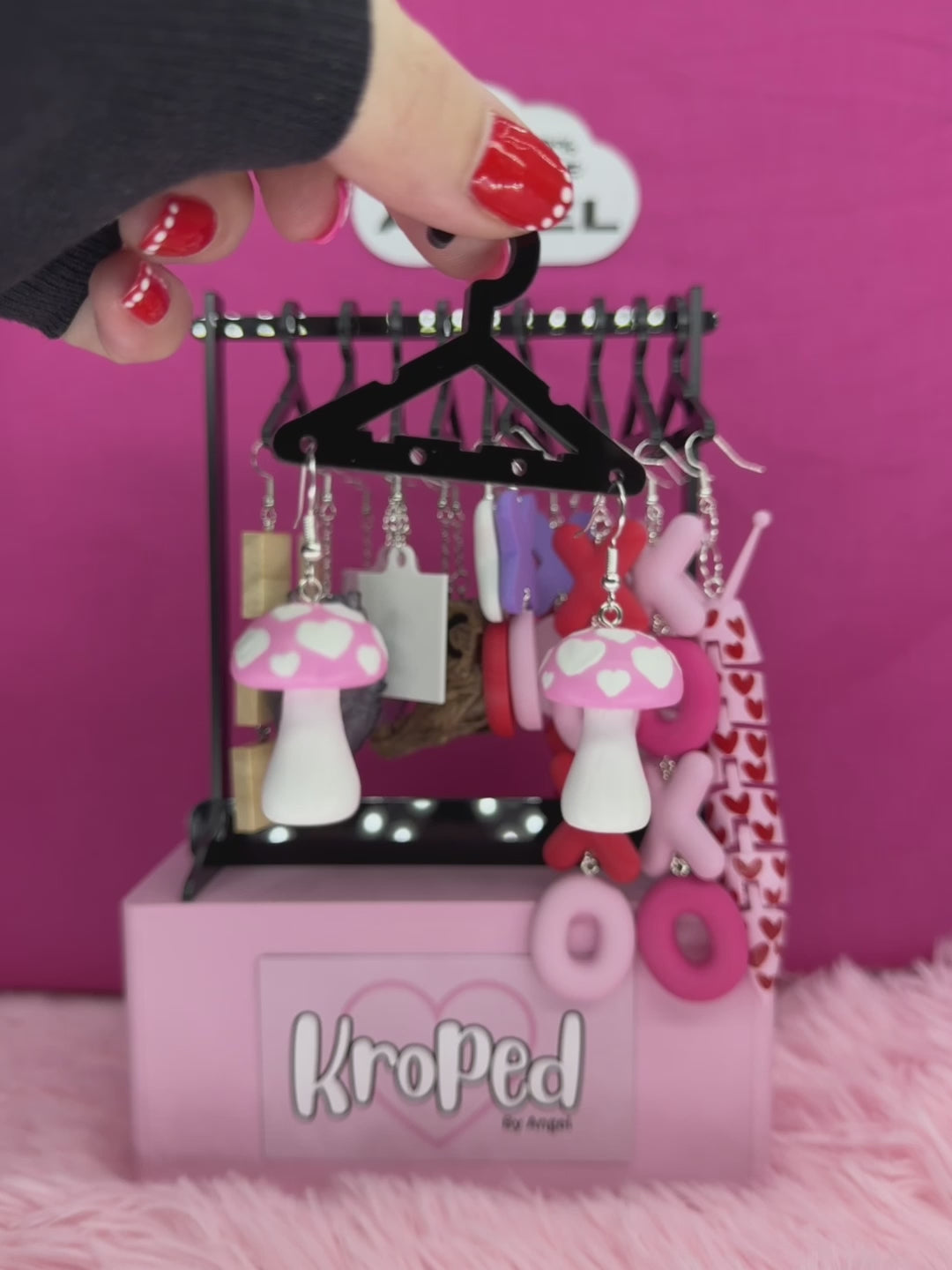 Lightweight hand-painted pink mushroom earrings with delicate white hearts! Each pair is meticulously crafted, ensuring that no two earrings are ever identical. Made from lightweight wood, these earrings are designed for long-term wear, providing both comfort and style. Embrace your unique fashion sense with these charming and one-of-a-kind accessories.