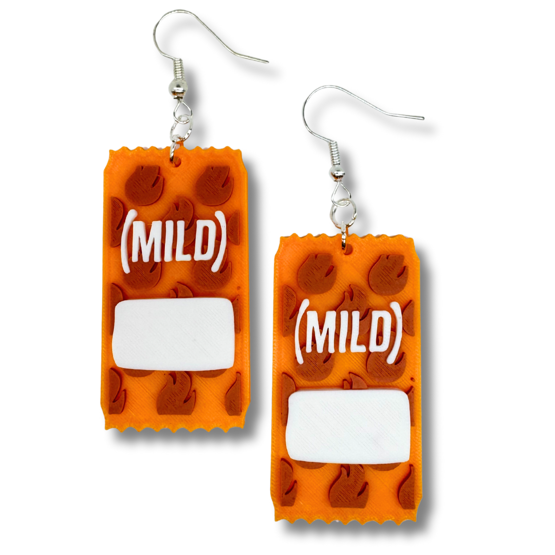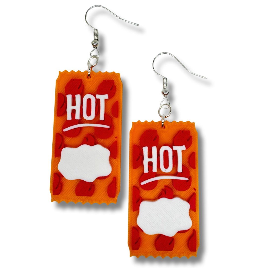 Spice up your look with these adorable 3D printed hot sauce packet earrings! Inspired by the classic packets everyone loves, each pair is bright, bold, and full of personality — just like your favorite taco night! They’re super lightweight, each packet is under 2 inches tall, and they come in a variety of “heat levels” so you can match your vibe from mild to fire. Perfect for foodies, festival fits, or anyone who loves a quirky statement piece. Handmade with love, just for you!