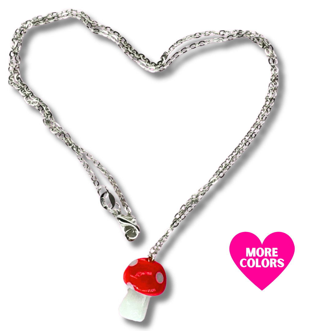 The Mushroom Necklace is available in two stunning metal colors, silver or gold, allowing you to choose the perfect match for your personal taste. The 18" sterling silver chain ensures a comfortable fit, while the lobster clasp on the back provides secure closure. With a wide range of mushroom colors to choose from, you can customize your necklace to suit your unique style. Made of durable glass, these mushrooms are built to last, ensuring that you can enjoy this enchanting piece for years to come. Elevate your jewelry collection with the Mushroom Necklace and embrace the magic it brings to any outfit.