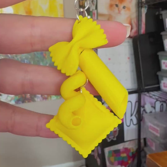 Carry a little pasta party with you wherever you go! This 3D printed pasta keychain features all four classic noodle shapes: penne, farfalle (bow tie), ravioli, and rotini—all bundled onto one fun and eye-catching keychain. Each piece is carefully designed to mimic real pasta textures while staying lightweight and durable for everyday use. Whether you're a foodie, a lover of quirky accessories, or just want something unique to spice up your keys or bag, this keychain is the perfect conversation starter.
