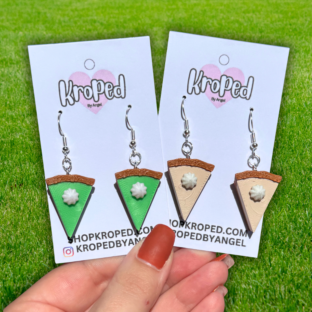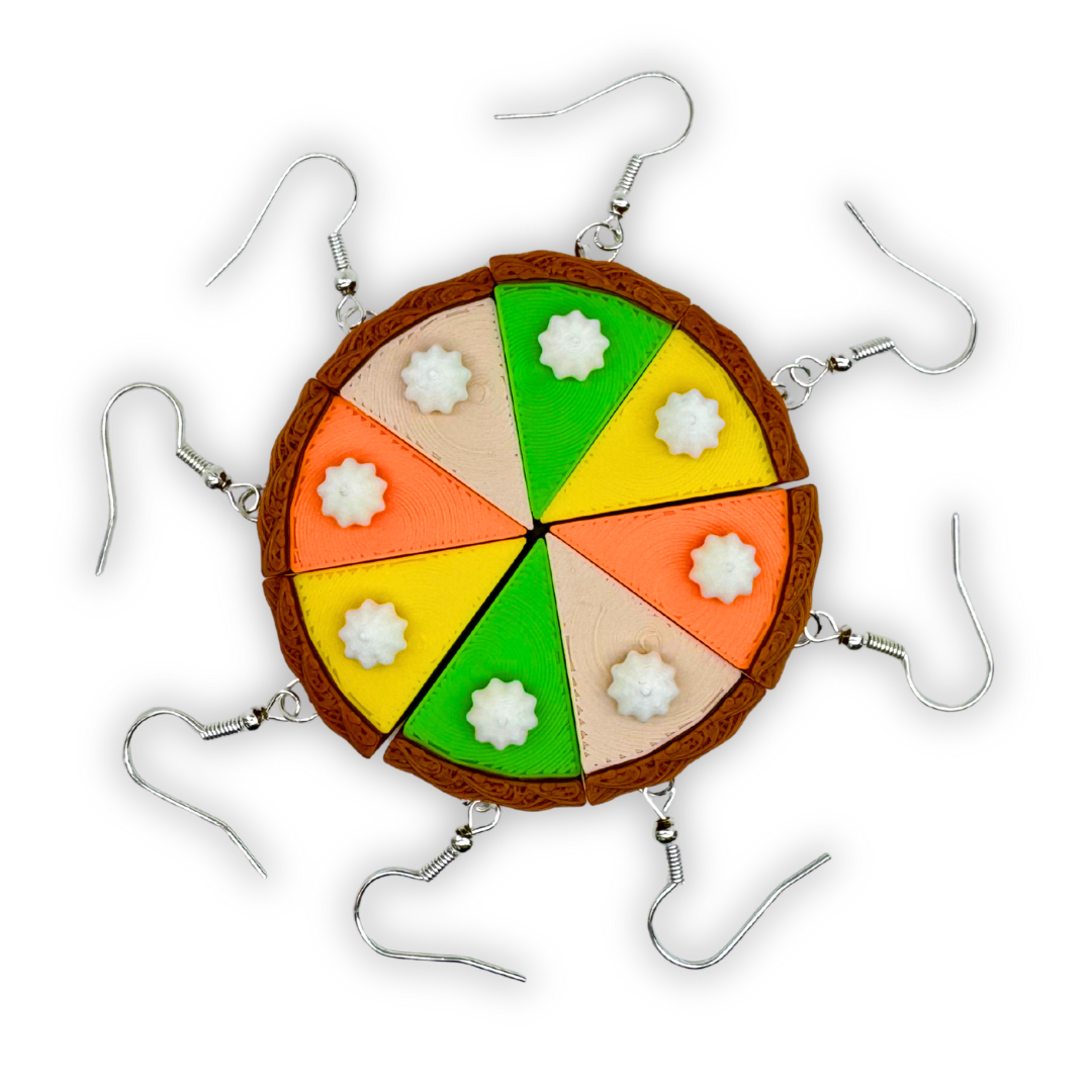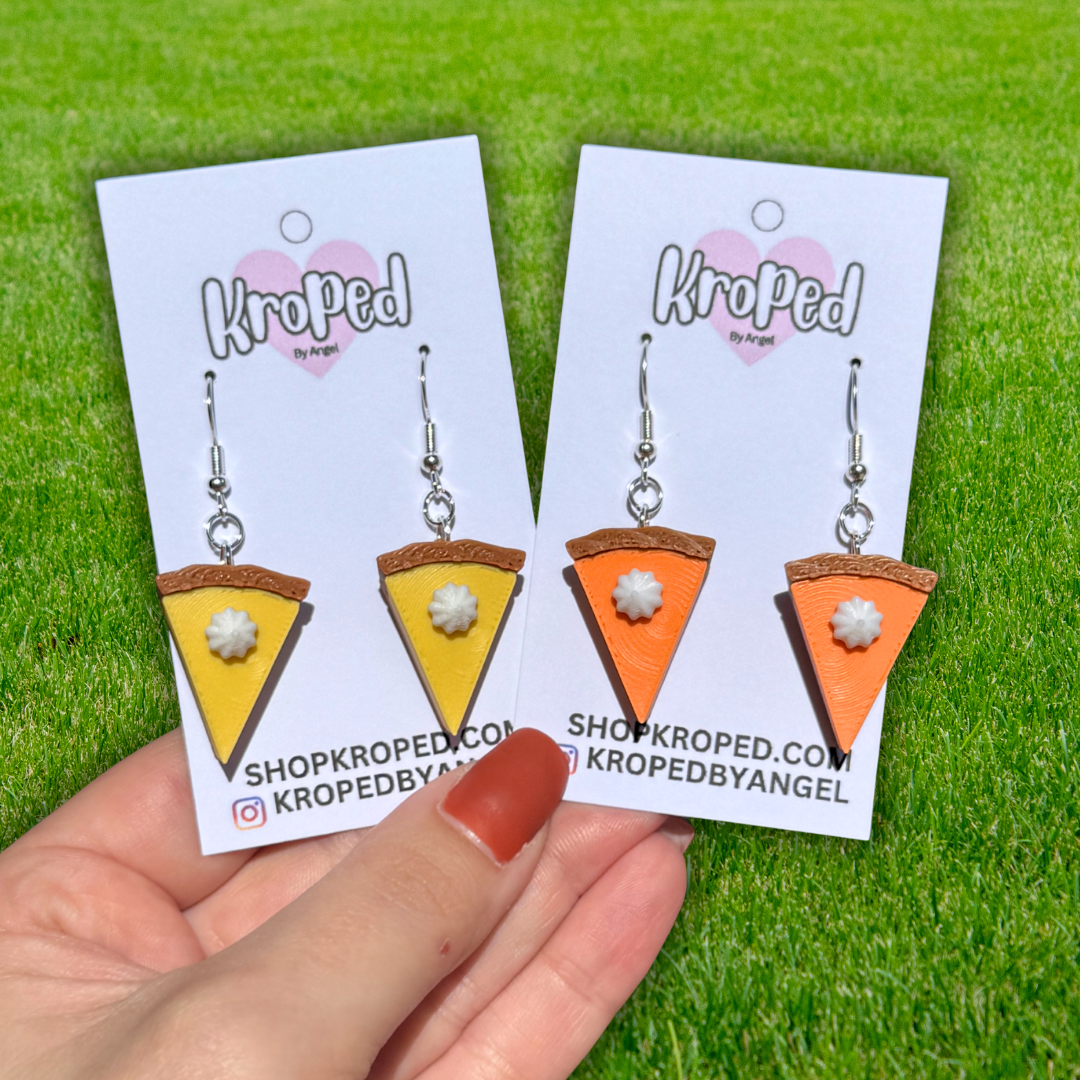 Sweeten up your style with these handmade 3D printed pie earrings! Each pair is crafted to look like a perfect slice of your favorite dessert, complete with a dollop of whipped cream on top. Choose from pumpkin pie, key lime pie, banana pie, or coconut cream pie variations—each one bursting with charm and nostalgia. Lightweight and playful, these earrings are perfect for food lovers, holiday outfits, or anyone who loves a quirky statement accessory.