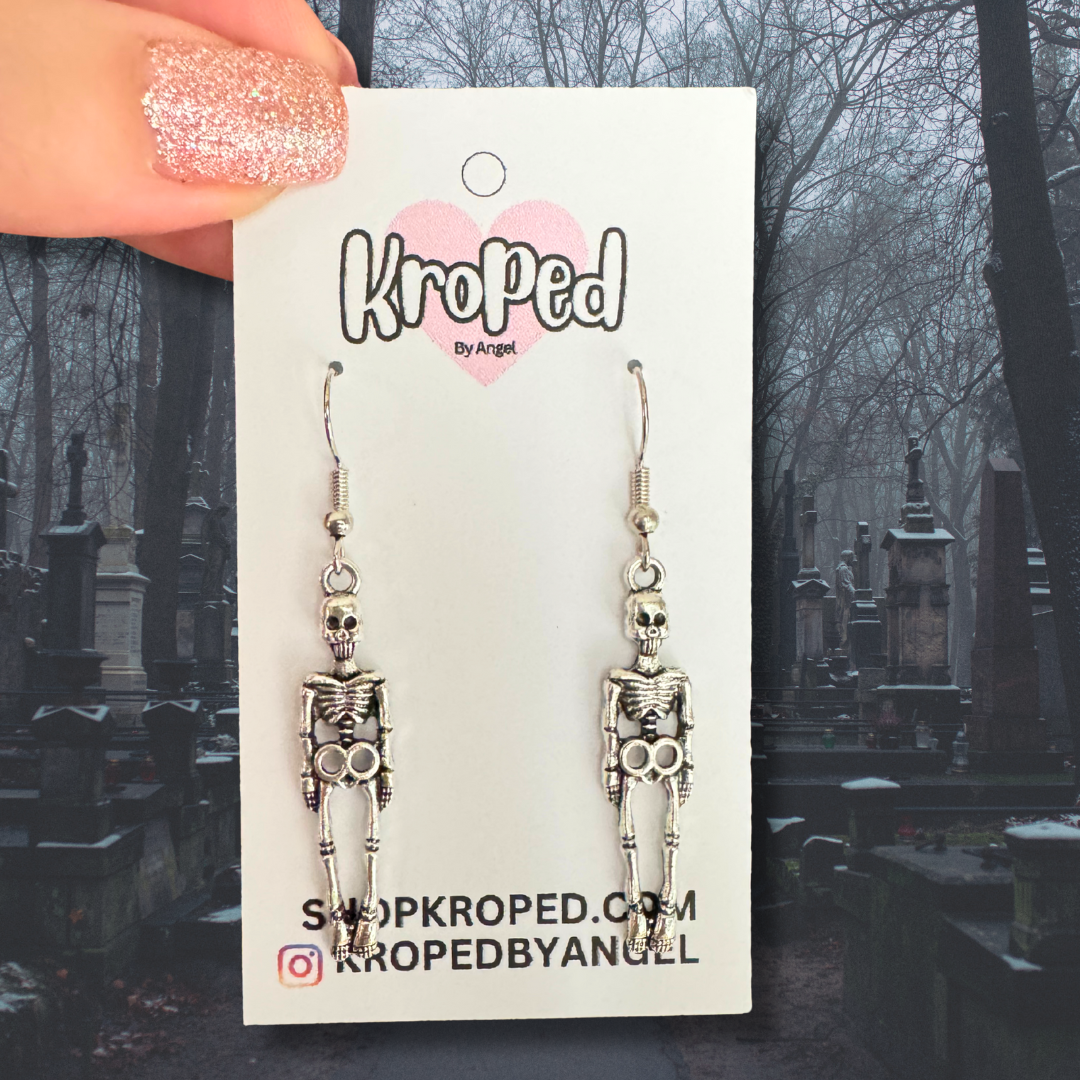 Creep it real with these tiny silver skeleton earrings! Perfect for Halloween or year-round spooky vibes, these lightweight metal dangles feature detailed skeleton charms that add just the right amount of eerie charm. Despite their bold design, they’re comfortable enough for everyday wear—whether you’re headed to a haunted party, rocking a gothic look, or just want a quirky accessory that stands out. Small, shiny, and spooky-cute, these earrings are a must-have for every skeleton lover.