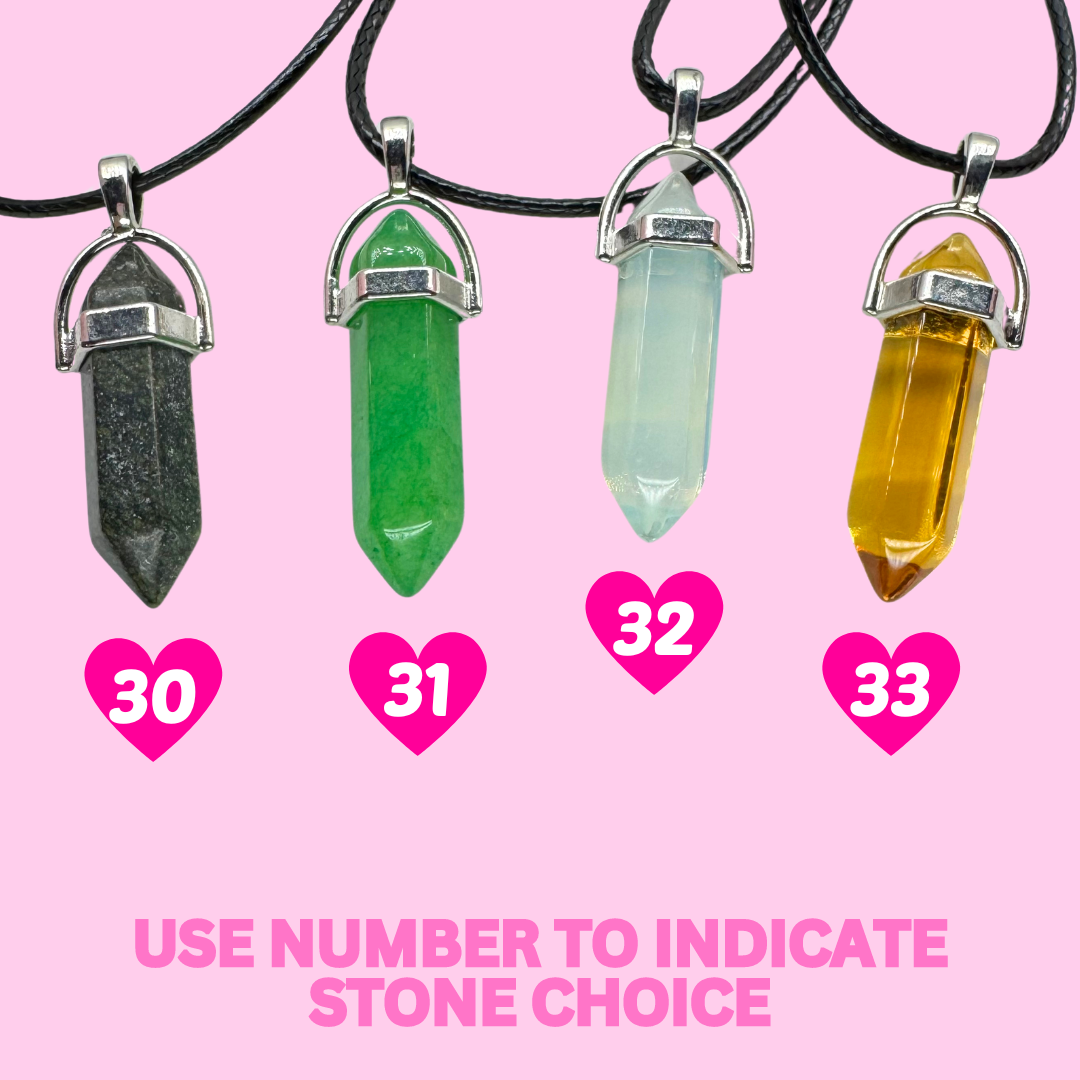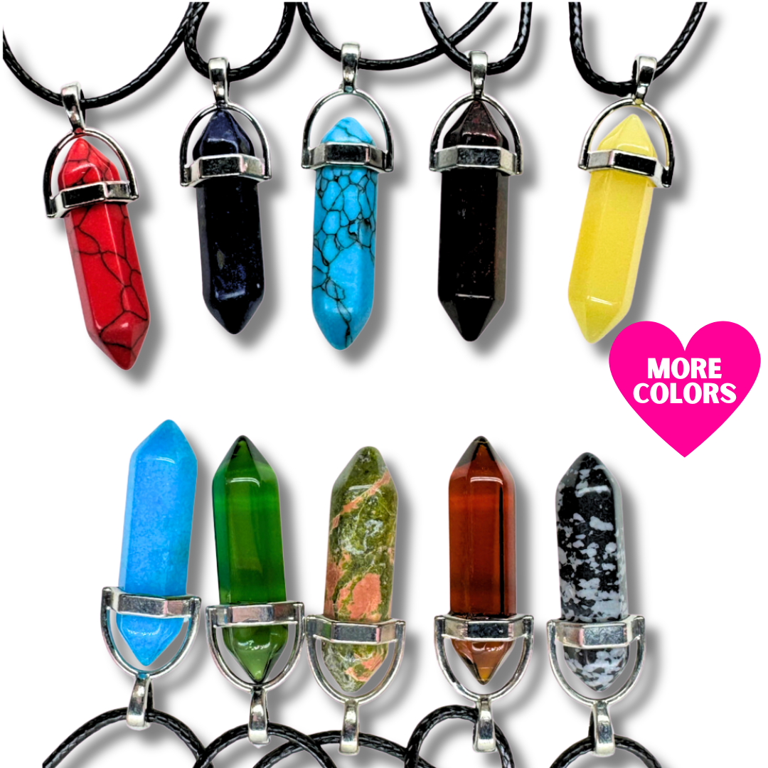 Enhance your style with our stunning stone necklace with a variett of different colors of glass stones to choose from! Each necklace comes with a 20" black waxed cord with a lobster clasp to ensure easy wear and a secure fit.