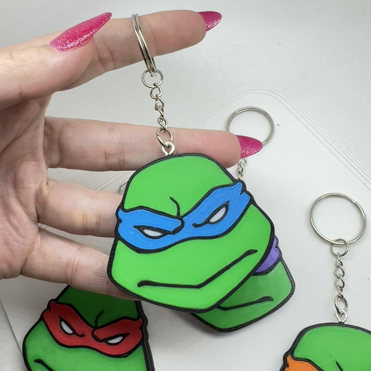 Unlock your inner hero with our Turtles keychain! Featuring four vibrant keychain designs, choose from the iconic faces of your favorite turtles, this keychain is a must-have for any fan. This standout piece is a double-sided 3D printed keychain, expertly crafted to bring the ninja spirit to life. Perfect for adding a touch of nostalgia to your keys or backpack, these keychains are not just accessories; they’re a statement of your love for the TMNT universe!